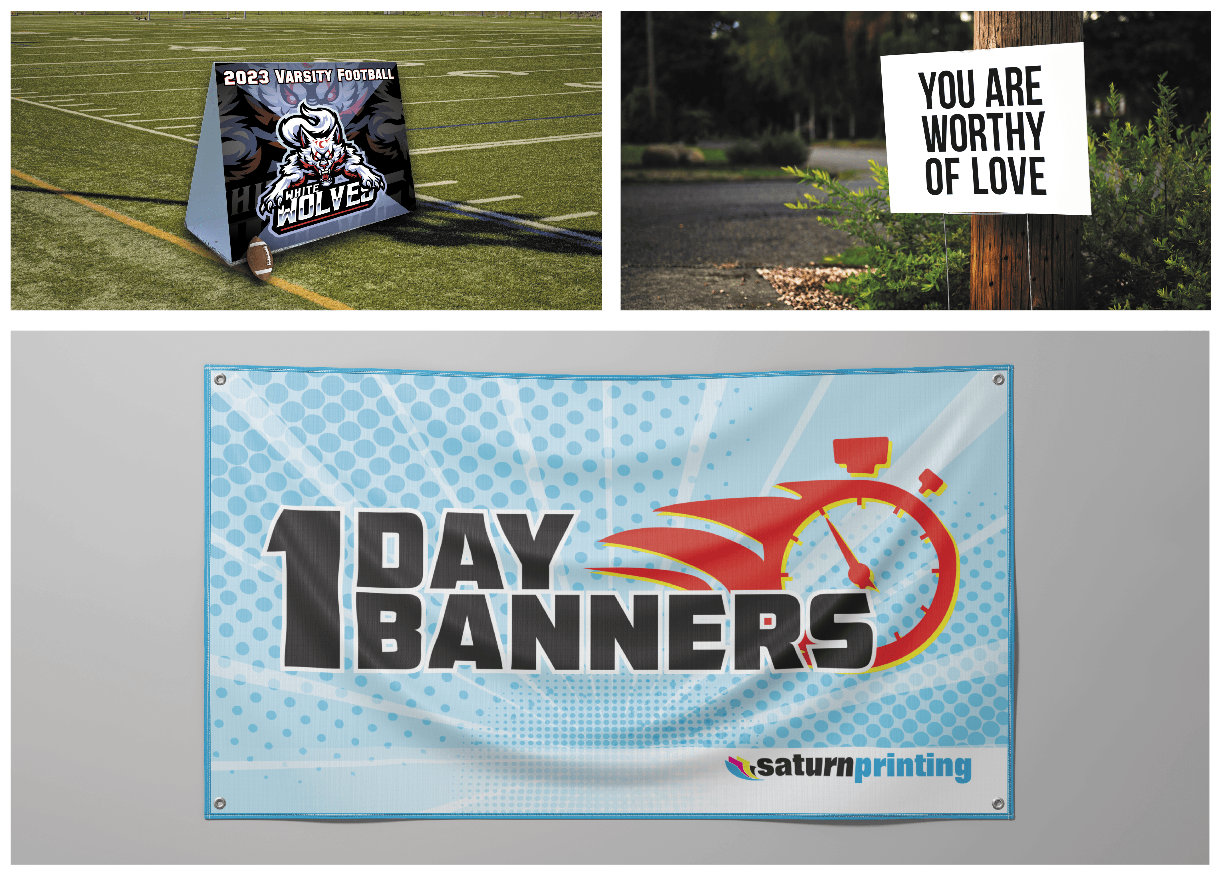 Our vinyl banner printing department can produce outdoor vinyl banners of any length and width. Another popular item are lawn signs. We have the material in-stock and ready to produce.